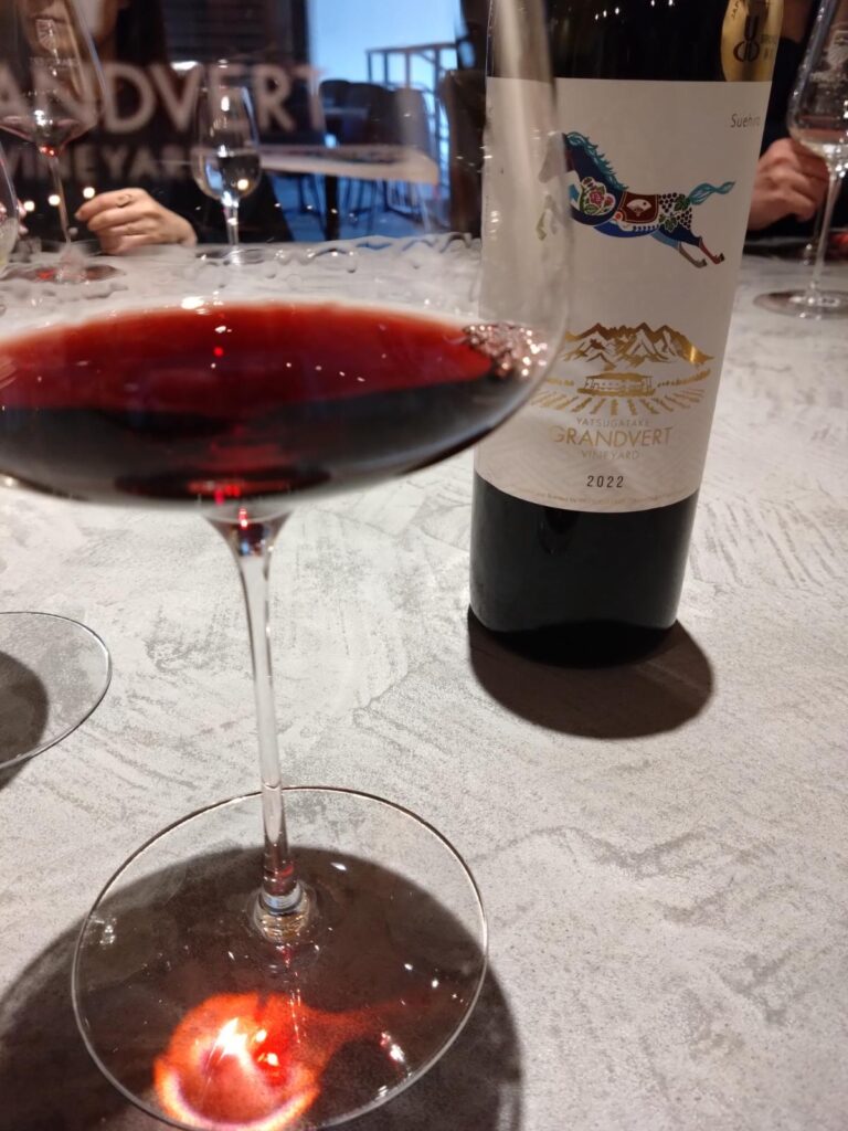 この赤ワイン、日本ワインコンクール2024で銅賞受賞に輝いた「スエヒロメルロー2022(※2025年12月現在、売切れ中)」です。