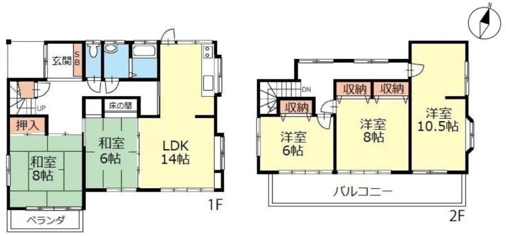 8帖、6帖の洋室は収納付きで使いやすい造りです。